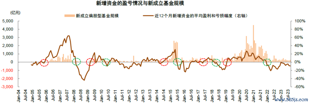 图表:年初至今公募基金发行较为低迷,历史经验显示当新增资金收益率转正时,公募基金发行有望回暖