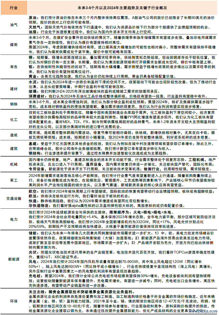图表:A股主要行业2024年观点汇总(1)