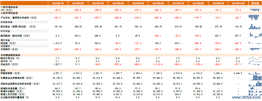 2)北上资金仍可能波动,但有望继续呈现净流入趋势。2023年8月以来在内外部因素综合影响下,北上资金波动较大。截至10月31日,年初至今北向资金净流入A股584亿元。展望后市,考虑我国稳增长政策发力有望改善经济增长预期、美联储加息渐缓、中美互动增多,我们认为北上资金有望从近期净流出逐步重新转为净流入。长期看,外资在A股的配置比例仍有明显提升空间。