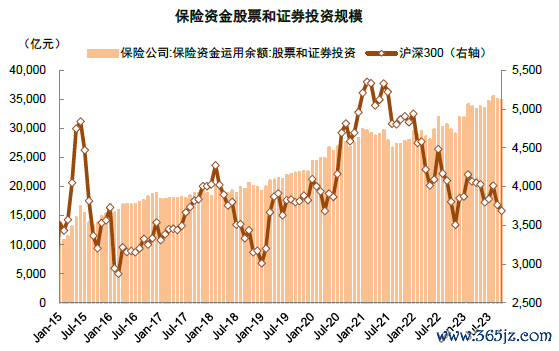 图表:2023年用于股票和证券投资的保险资金规模持续提升