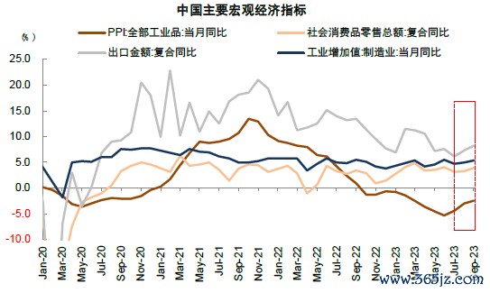 2024年我国经济增长关注以下方面:1)地产在经济增长中体量占比下降,但可能仍是预期回稳的关键:2023年房地产销售面积在低基数的基础上进一步回落,1-9月住宅销售面积同比下滑6.3%至7.28亿平方米,按照当前路径推算全年销量相比2021年高峰期的年化17.3亿平方米已有较大幅度调整。中金地产组判断2024年房地产可能仍将受供需两侧影响,需关注地产投资及产业链的变化趋势及政策应对。[1]2)物价修复程度:2023年在总需求恢复相对缓慢,而制造业投资为代表的供给侧连续高增长之后,供需不平衡叠加工业企业加速去库存影响下,CPI和PPI均相对偏弱,前三季度GDP平减指数同比下滑0.78%,也是企业盈利与经济景气背离的主因;2024年伴随供需矛盾缓解,以及工业库存降至低位,物价下行压力或得到改善,修复幅度取决于内外需的恢复情况。3)出口形势仍有不确定性但有望边际缓和:我们认为2024年美国经济有望软着陆,去库周期临近尾声,叠加我国出口竞争力仍在提升,中金宏观组判断2024年我国出口增长2%,但非经济因素影响之下,供应链调整带来“去中心化”影响仍值得关注[2]。