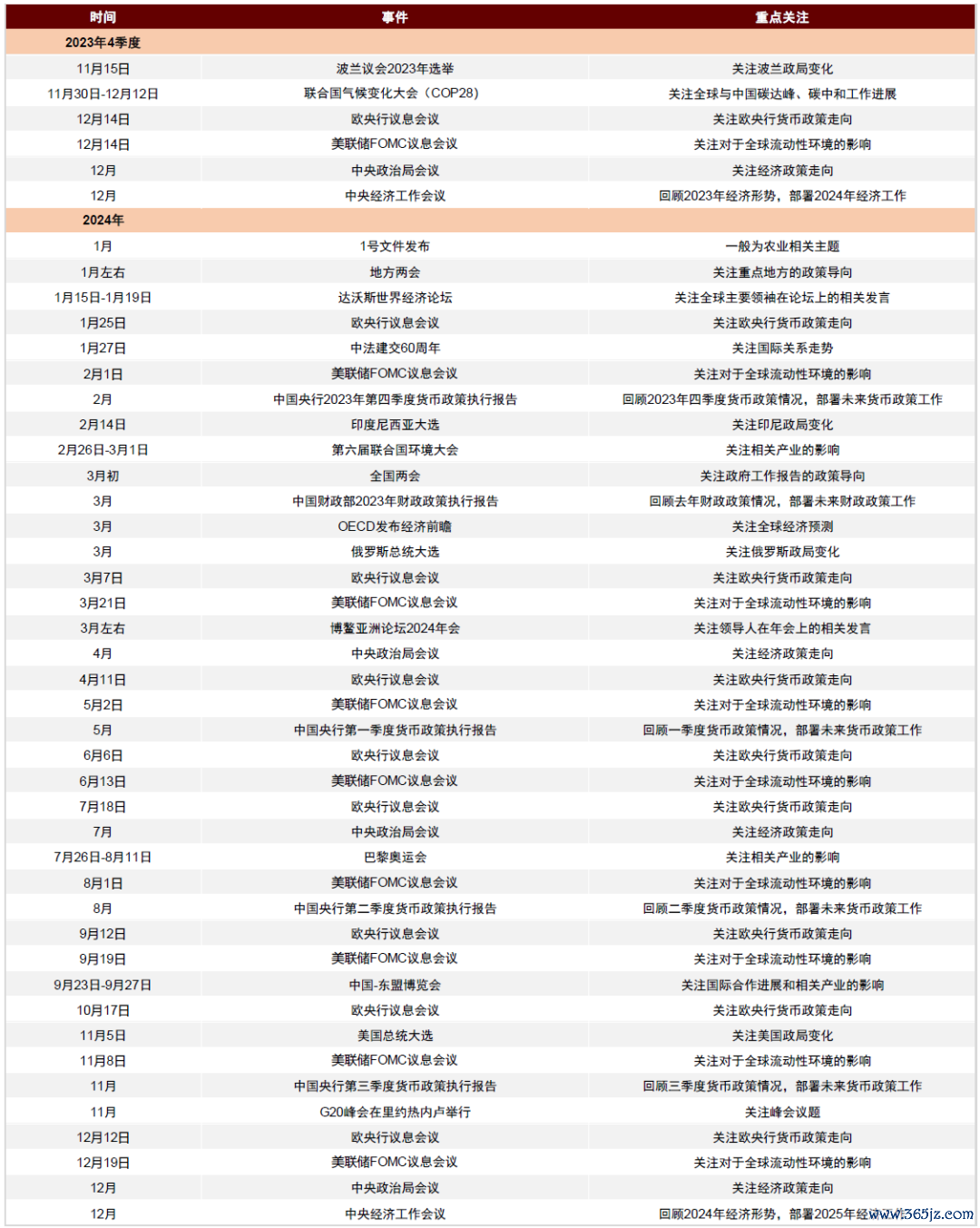 图表:未来一段时间国内外可能的重要事件不完全梳理