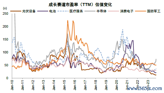 图表:部分成长赛道股估值变化趋势