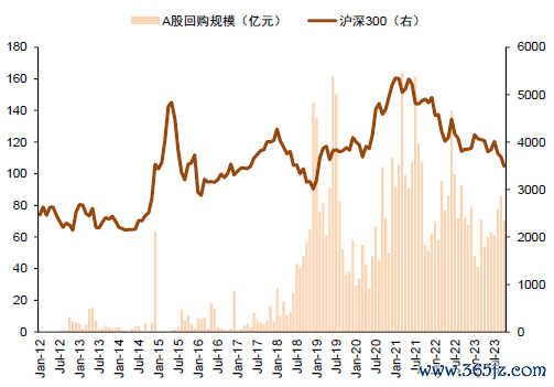 图表:2023年8月以来A股上市公司回购积极性明显提升