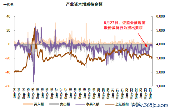 图表:2023年9月后A股减持规模明显回落