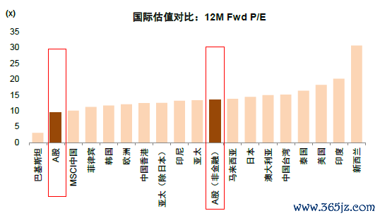 图表:A股市场整体估值水平在全球具备吸引力