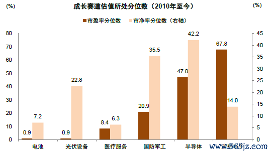 图表:较多成长赛道估值回落至历史均值下方