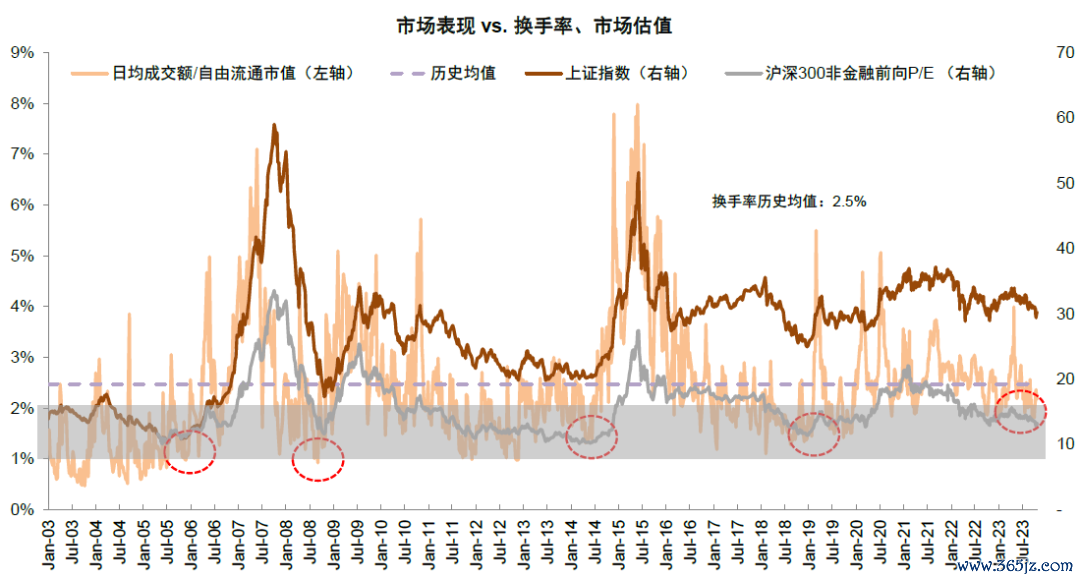 图表:2023年初以来股市交易活跃度高位回落,近期伴随政策预期改善有所回升
