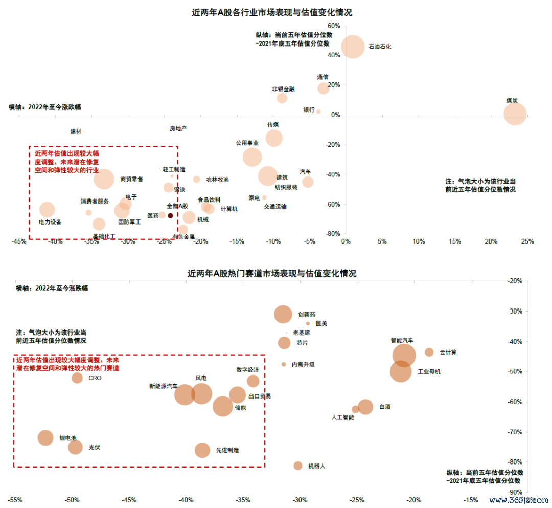 图表:从估值端看,近两年估值出现较大幅度调整、未来潜在修复空间和弹性较大的行业可能包括电子、电力设备、医药,等等