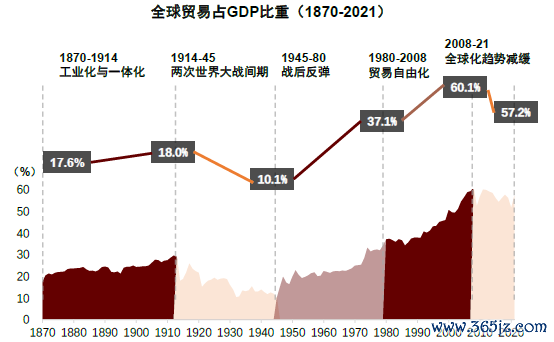 图表:全球贸易占GDP比重