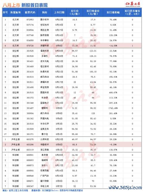 8月新股普遍“上市即巅峰”